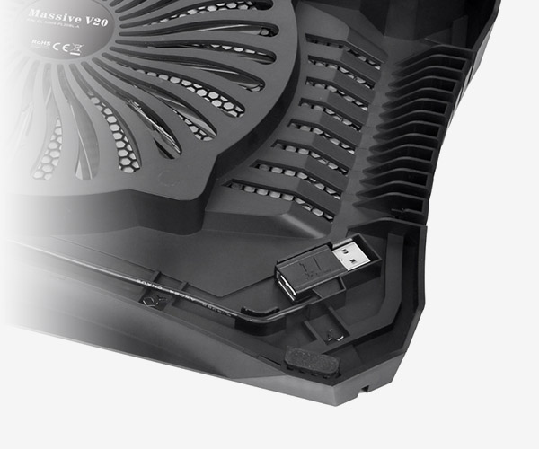 Effective cooling performance with high quality material. Compatible with 17" notebooks and below. Large 200mm fan with big airflow offers high cooling performance. Big area of hexagon mesh allows optimal airflow to cool the notebook efficiently. USB cable management and extender make working enviornment neat and tidy.